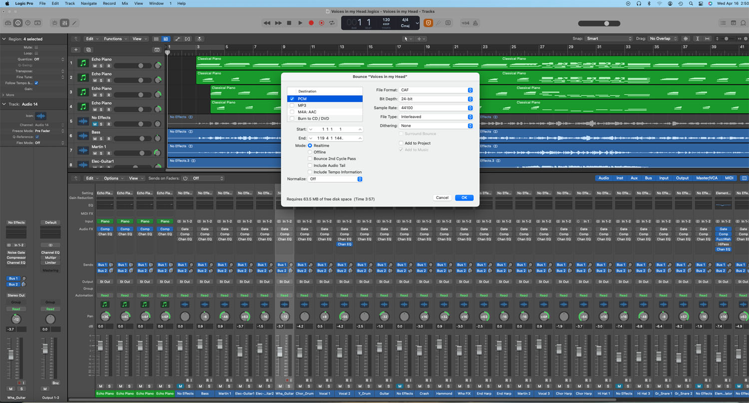 Full scale recording service for music, speech, podcast, soundtrack, overdub, etc... Digital music and analog to digital conversion. Full stereo quality up to 32-bit depth. File formats include AIFF, WAV, CAF, ACC, M4A, ACC, MP3 ... Varied sample rates up to 192000 (44100 is standard CD quality). CD formats in CDDA or DVD-A. Pitch change & correction. Acoustic and electronic drum capabilities. Thousands of instrument combinations thru MIDI software & electronics.